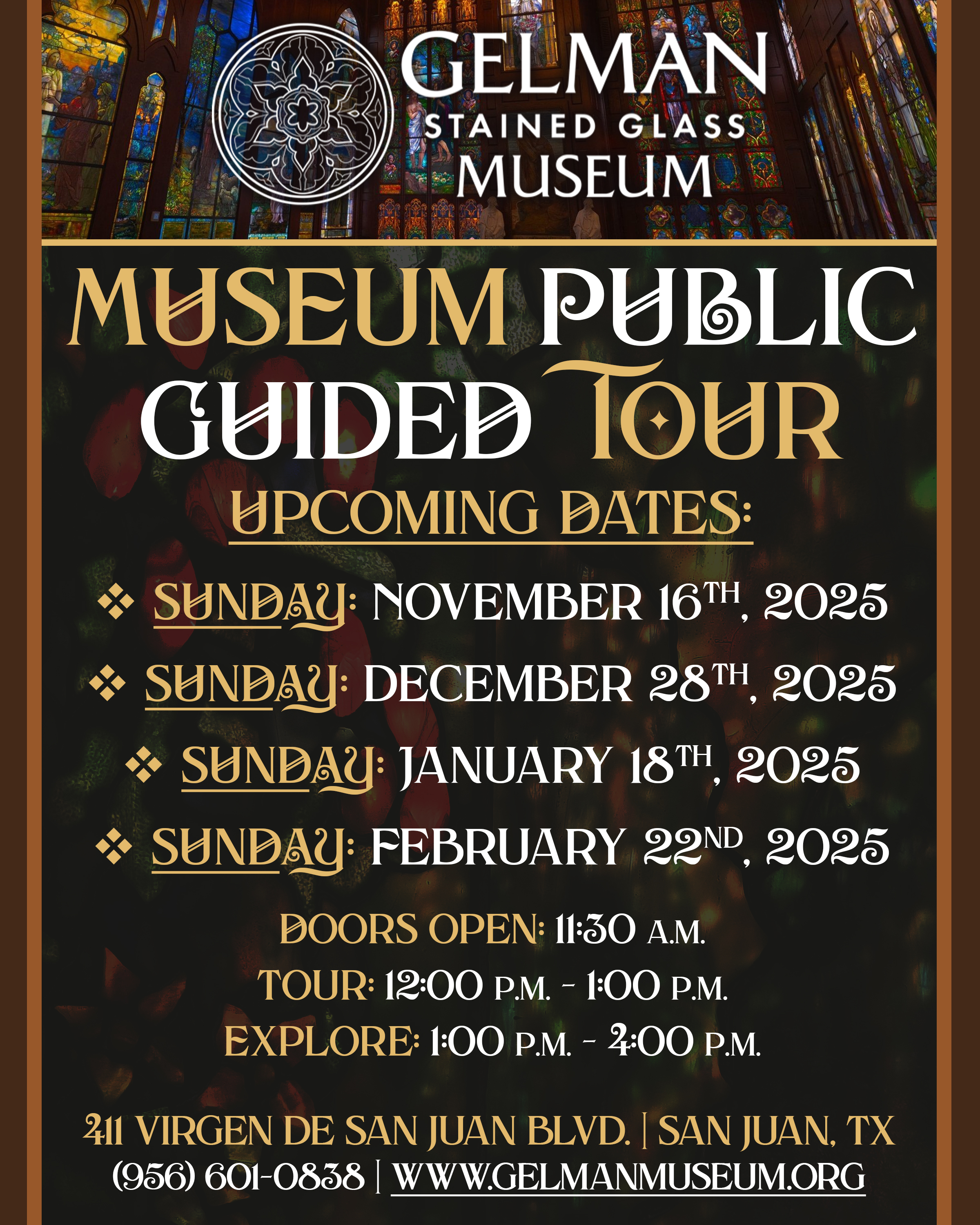 artistry behind the windows, followed by a self-guided exploration at your own
